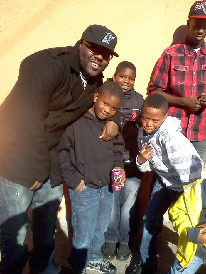 Once a month events are held to keep a fresh thought in children’s minds that there is someone who cares about them. As the interview concluded, a young man walking down the street attracted his attention. He asked the young man what size shoe he wore, the young man replied, “11,” and Mistah F.A.B. proudly produced some brand new Jordan tennis shoes, handed them to him and said, “Merry Christmas.”