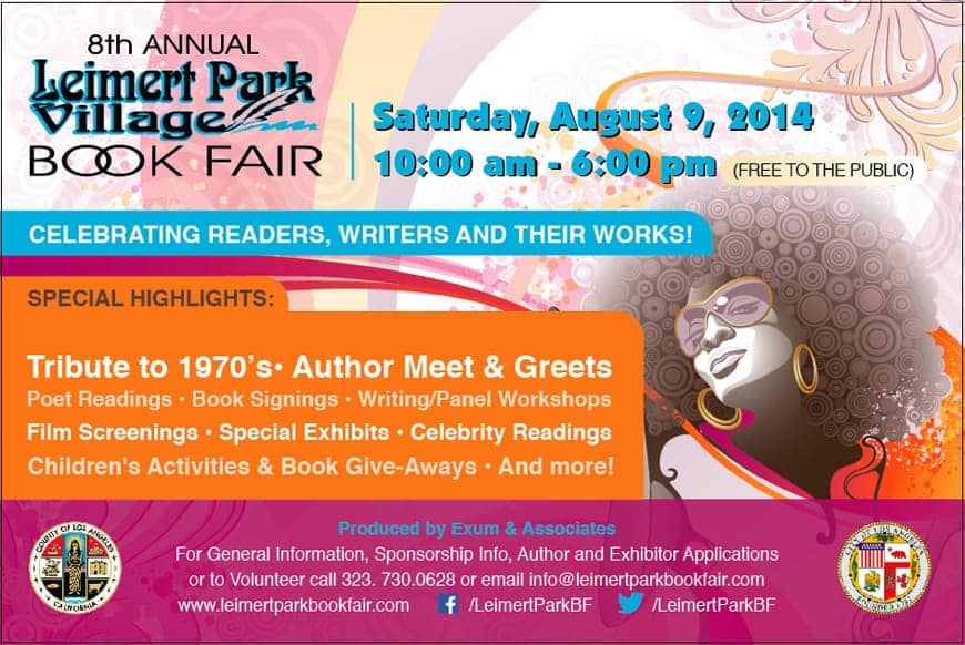 Cynthia Exum: I founded the the Leimert Park Village Book Fair in 2007 in partnership with 9th District Councilman Bernard C. Parks, the City of Los Angeles, County of Los Angeles, LA Department of Cultural Affairs and Eso Won Books, one of Los Angeles’ premier African American owned bookstores.