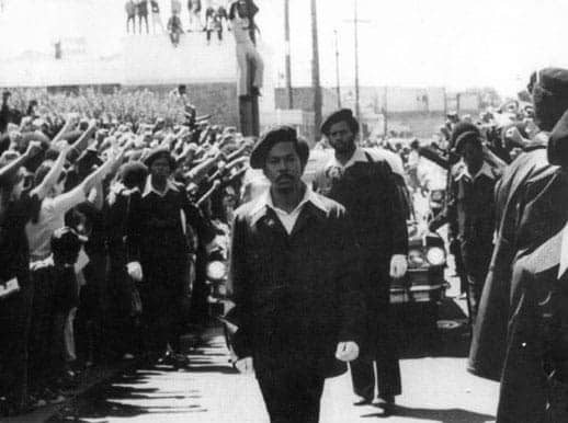 We had about 200 Party members in uniform, including the children. Our Party flag with the Panther on it was flying high over our heads out of the church window. The people in the community also loved George Jackson and over 8,000 people filled the streets outside the church.