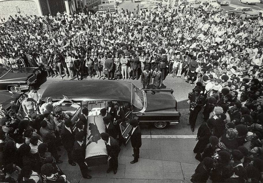 We placed George’s body in the hearse and the Panthers outside cleared a way through the crowd. I was asked to ride with the family, and the rest of the pallbearers walked in front of the cars.