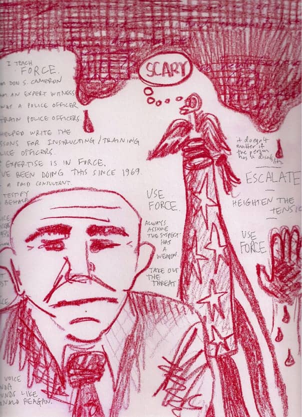 Don Cameron, one of the lead witnesses, has been teaching police to “take people down” for over 40 years. He literally said they should shoot first, and then assess any disability-related needs. Always assume the person has a gun. Take out the threat. When asked directly, “How do you update your trainings,” he said, “I keep teaching them.”
