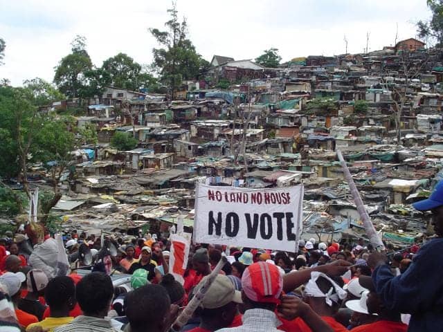 Abahlali demand that the politics of blood must be replaced by a genuine politics of negotiation and free organizing outside of state and party control. We demand that the land and wealth of the country must be shared fairly. We demand that as an immediate first step the social value of land must be placed before its commercial value.
