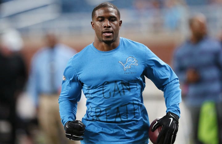 They were not alone. Detroit Lions running back Reggie Bush, who was attacked by Abe Foxman and the Anti-Defamation League for comparing the late Michael Brown’s hometown of Ferguson to Gaza on Instagram, was not cowed into silence and wore a shirt that read “I can’t breathe” during warm-ups. He said, “Honestly, I’ve always been the quiet kid. I’ve always been the one who’s reserved, to kind of sit back and not really get into politics and things like that. But I don’t know why I just felt some kind of … I guess the situation just touched me.”
