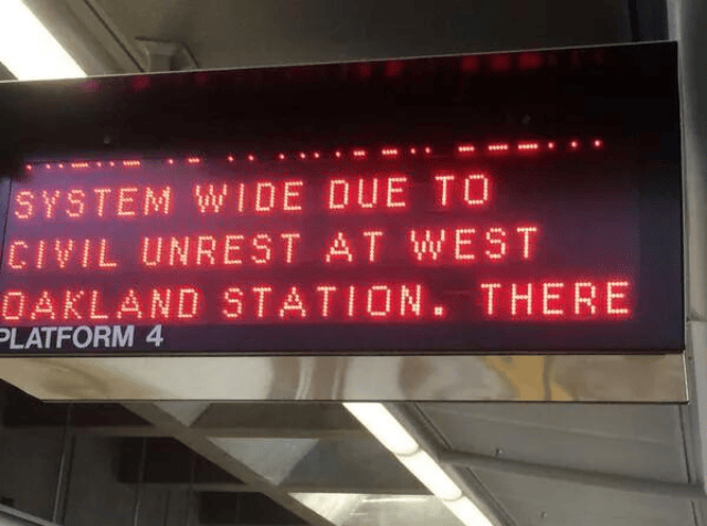 And they brought the spirit of that ceremony with them throughout West Oakland. They collected people along the way, and met us at the BART station. Then at the BART station, they held more ceremony, and upstairs we had two teams of folks shutting down the West Oakland BART station.