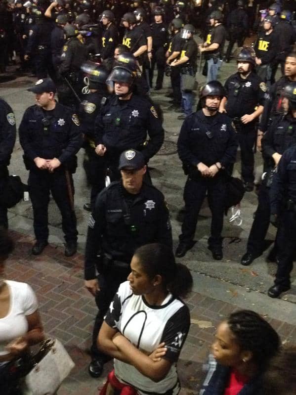 On Monday afternoon, Dec. 8, I was meeting with an African American theater director at a Starbucks in downtown Oakland. Unexpectedly, a woman employee approached our table and in a quiet voice said, “We’re closing in 15 minutes, so everyone has to leave.” It was just 3:35 in the afternoon. I looked around and a short Asian American cop was standing near the counter, just standing, waiting, watching. As I gathered up my things and began to leave, another employee was mopping the floor.