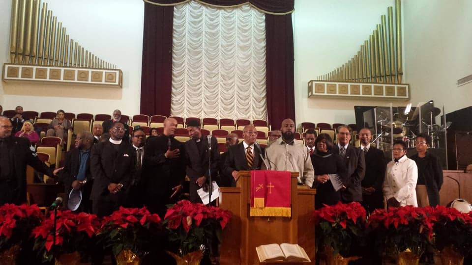 Following Brown’s brief address, Pastor Amos Brown of Third Baptist Church took up a “love offering,” requesting donations from the attendees – 100 percent of which would go to the Brown family for travel and other incidental expenses.