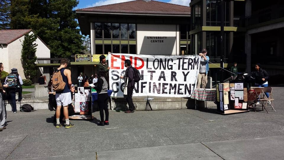 The push for these monthly statewide coordinated protests came from the remote northwest corner of California near the notorious Pelican Bay State Prison, where a strong cadre of activists has a long history of prisoner support. Their action took place in Arcata, home of Humboldt State University.