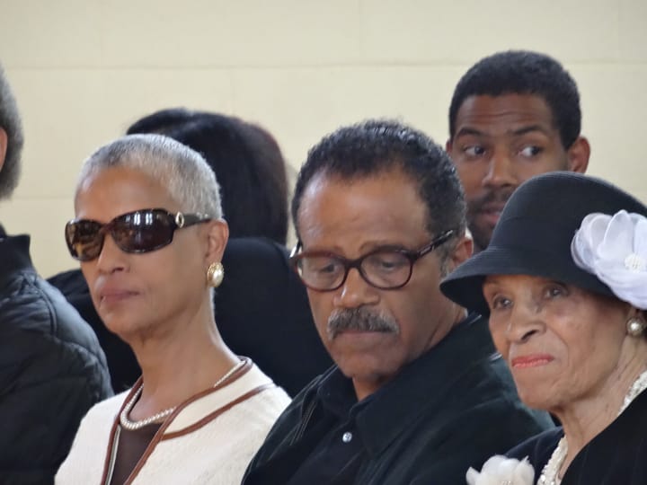 When the family walked in, Jerri Lange’s composure, warmth and dignity, as well as that that of her family, sons and daughter, grandchildren and other relatives, set the tone for the afternoon. Indeed this was a celebration. Father Jay Matthews officiated the proceedings with the warmth he always exudes, despite the fact that he too missed Michael, having grown up with Ms. Jerri’s children. At Ms. Jerri’s home, the evening Michael made his transition, I saw a photo of Father Matthews with his mother and other mothers as a baby, when Ted was also a baby. The day was a busy one for St. Columba Church; immediately following Michael’s ceremony, there was another funeral.