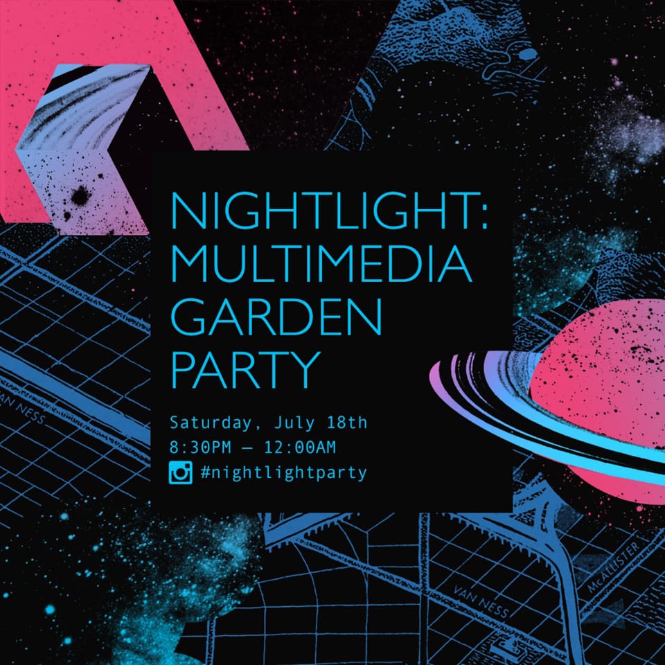 “Night Light: Multimedia Garden Party” is Saturday, July 18, from 8:30 p.m. to midnight, at SOMArts, 934 Brannan St. in San Francisco. This art exhibition will feature some of the hottest artists in the Bay Area, including Emory Douglas, Sage Stargate, Duane Deterville, Karen and Malik Seneferu and others.