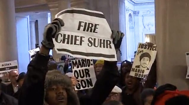 Trade unionists joined a rally and press conference on Dec. 24, 2015, on the steps of City Hall for Mario Woods, a young African American worker who was executed by San Francisco police on Dec. 2, 2015, in Bayview Hunters Point. Black San Franciscans are being driven out of San Francisco through gentrification and displacement and a decades-long job lockout, and some unionists are calling for labor action to stop these economic and police assaults.