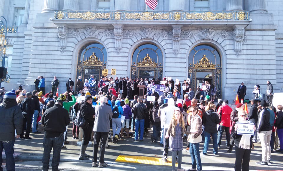 The community is demanding that Mayor Ed Lee step in and fire Chief Greg Suhr! Mayor Ed Lee can’t keep brushing this type of police brutality under the rug. “This is the beginning of a movement for the injustice done to Mario Woods,” stated Minister Christopher Muhammad of the Nation of Islam. The large crowd of community members moved through the hallways of City Hall chanting, “No justice, no peace!”