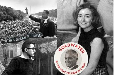 What was Hillary Clinton doing while Sanders was organizing sit-ins and demonstrations? Well, she was also living in Chicago at the time, but she was working for the other team: In 1963-4, Clinton was a volunteer and supporter for the campaign of Barry Goldwater.