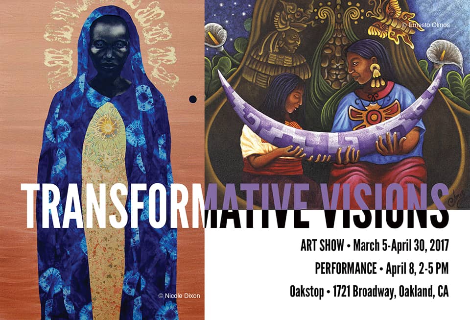 The visual art exhibit is up through April 27 at Oakstop. Bay Area artists, working in a wide range of styles and media, are participating. They include Abba Yahudah Sellassie, Buggsy Malone, Ernesto Olmos, Malik Seneferu, Micah Bazant, Nicole Dixon, Pablo Soto Campoamor, Salma Arastu, Tomahawk Grey Eyes, Virginia Jourdan.